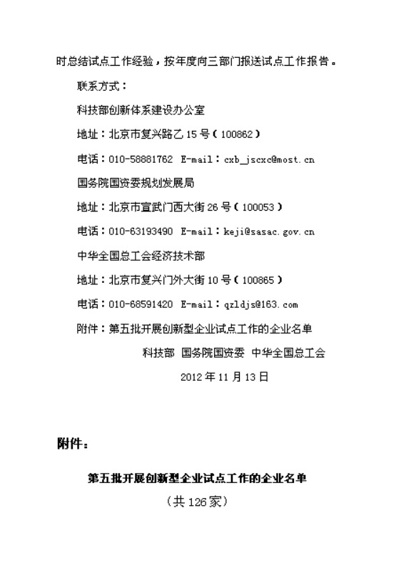 国家第五批创新型试点企业