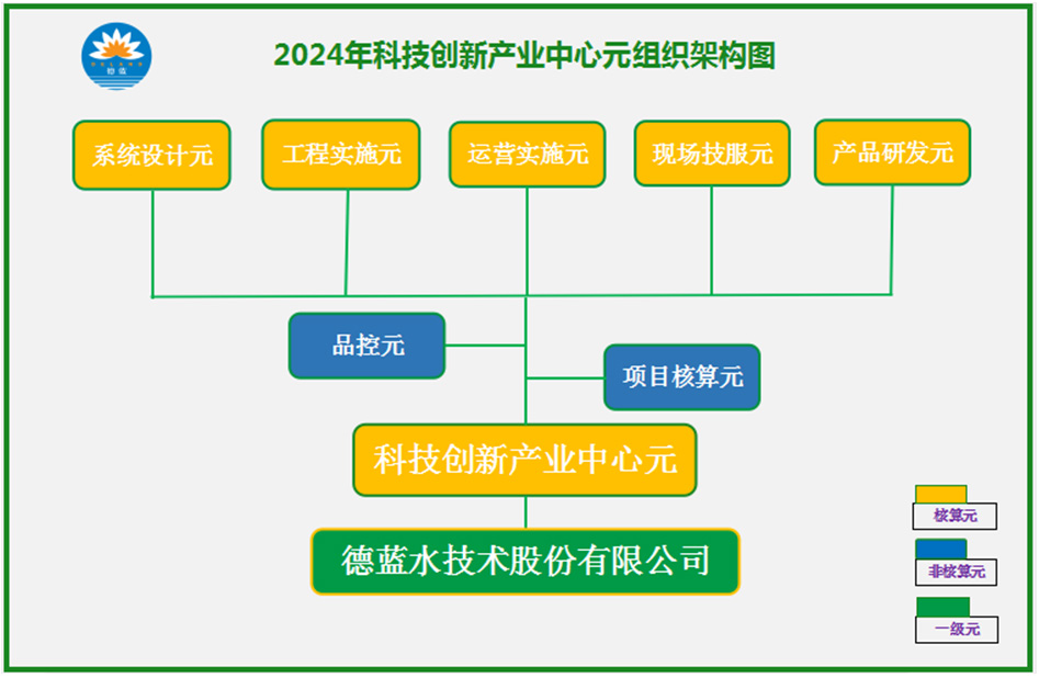 2024年二级内部核算元科技创新产业中心元下设五个三级核算元、两个非核算元的组织架构图(下图)