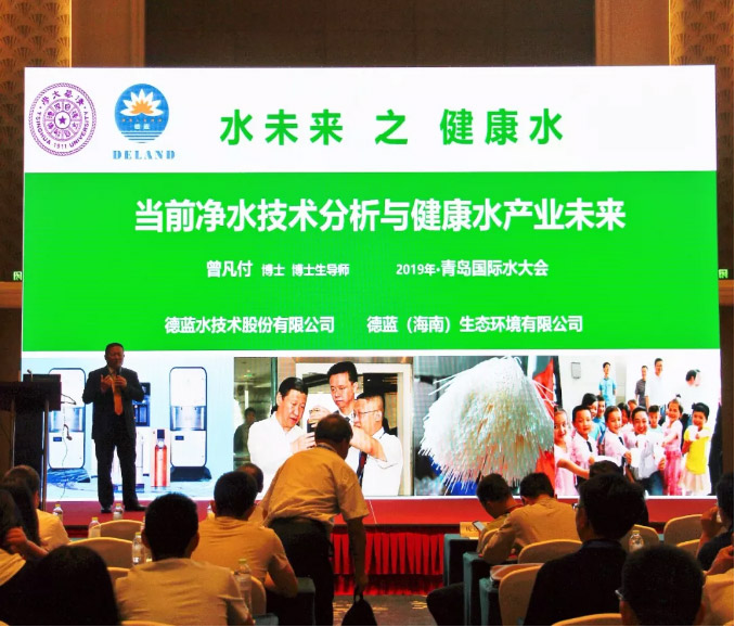 德蓝水技术股份有限公司董事长曾凡付先生在会议中以《当前净水技术分析与健康水产业未来》为主题做了综合报告,整个会场高朋满座,引起业界人士的高度关注。