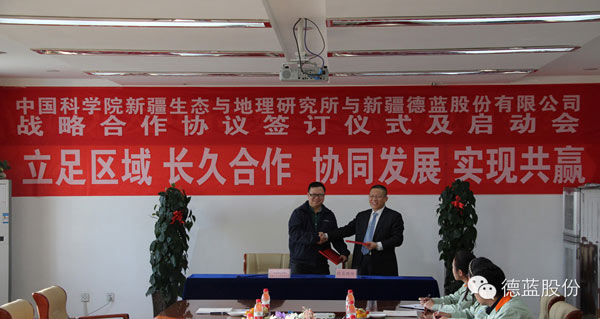 为充分发挥在人才、技术、项目和信息整合等方面的优势,以服务企业,满足产业需求,加速科研成果转化,提升创新能力为目标,11月6日,中国科学院新疆生态与地理研究所与新疆德蓝股份有限公司战略合作签订仪式及启动会圆满召开。
